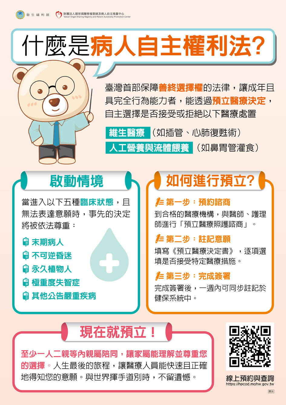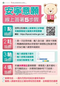 病人自主權利法、安寧緩和醫療及器官捐贈(預立意願三法) 相關資料,請民眾參閱使用(一)。