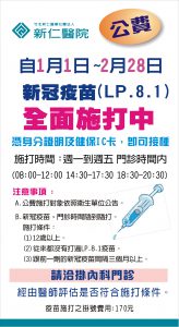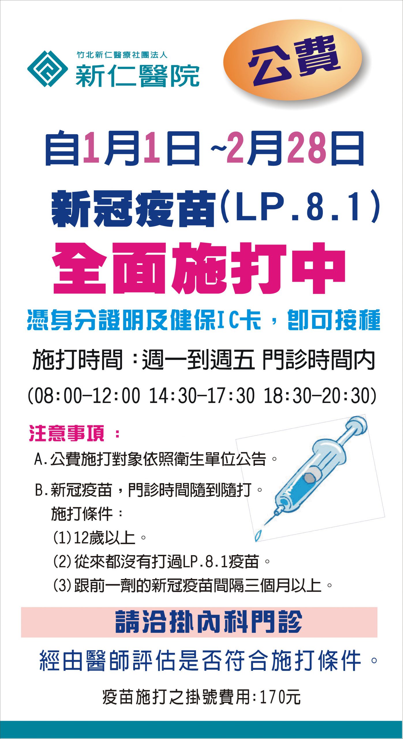 115年度公費新冠疫苗(LP.8.1)自1月1日起全面施打,敬請多加利用!